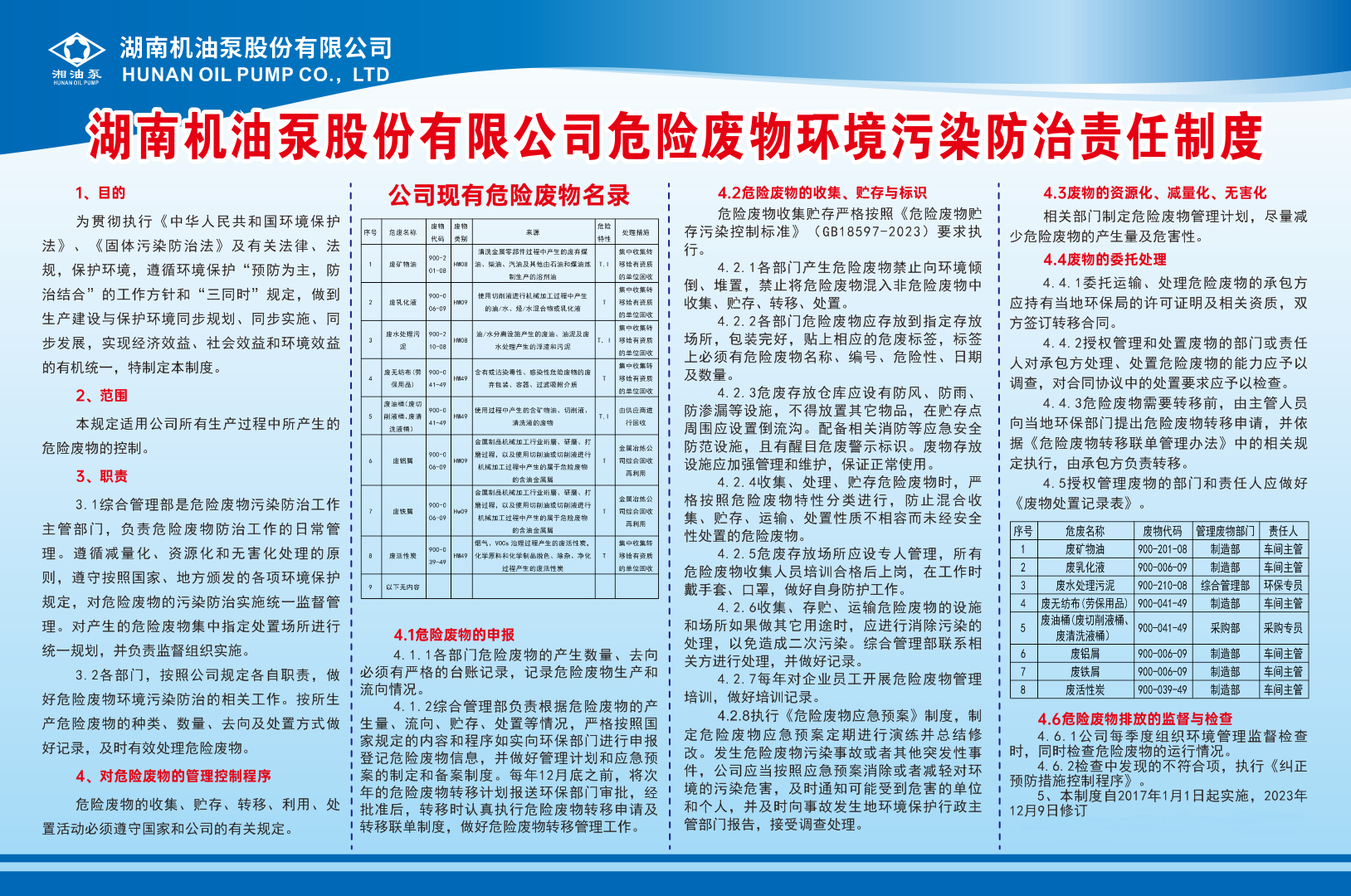 湖南機(jī)油泵股份有限公司危險(xiǎn)廢物環(huán)境污染防治責(zé)任制度